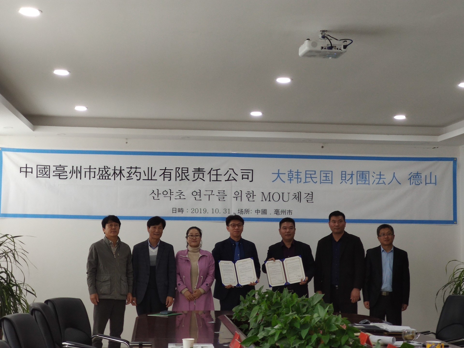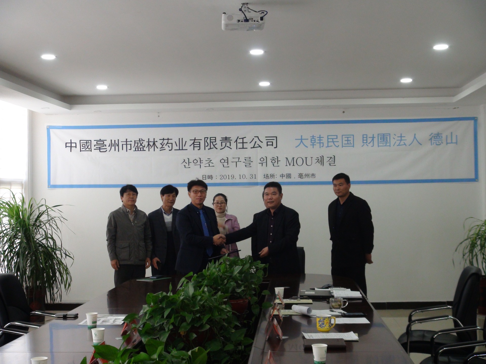 2019年10月31日,安徽盛林國藥飲片有限公司與大韓民國Global Herb集團正式簽約,開展中藥材采購戰(zhàn)略合作。安徽盛林國藥飲片有限公司總經(jīng)理高廣彬和大韓民國Global Herb集團李運鎬,大孝制藥負責人樸喜德、大英制藥負責人申杰燮共同簽署業(yè)務(wù)合作協(xié)議書,標志著雙方邁入了圍繞中藥材的深度合作。